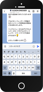 ALBION DRESSER LINE公式アカウントのトーク画面に「リワードクラブ」と送信すると、特典に関する情報が得られます。
